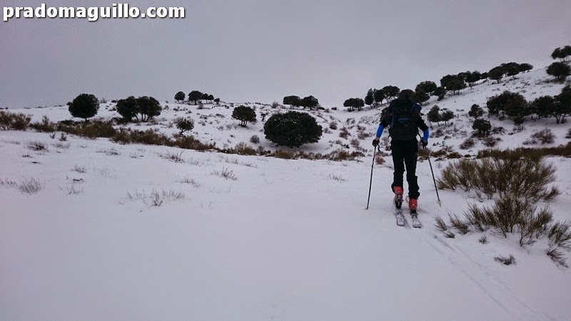 Nueva experiencia. Esquiar entre encinas es algo nuevo para nosotros.